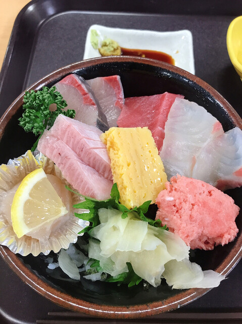 | '22/08/13 美味くてコスパ良ければ、いンだよこまけえ事は 販売機で食券を購入、お盆を持って並んで カウンターで料理を受け取り、お茶はセルフ サービスと、"店"というより"施設の食堂"等 雰囲気も万代の瓢と同じ。しかし注文した物 以外にも漬物などの小鉢が一つおまけで付き 味噌汁も一杯目は無料なのが嬉しいザマス。 自分は海 鮮丼、友人は刺 し身定食を注文、共 に税込み850円(季節により内容と価格が少し 変わるようだ)、ボリュームがあってコスパは 良好。味は…そりゃ市場内にあるんだから 美味いに決まってる!ただ友人が言うには 「刺身じゃなくて切り身、ブツ切りじゃね?」 刺身といえばもっと薄く切るイメージだけど、 厚みが1.5cmくらいあって男らしい。いや 柔らかいし美味いから問題ないんだけどね! (一方、私の海鮮丼内のネギトロは、一部しか ミンチ状になっておらず、マグロからネギった ままの切り身状の塊もおり、これまた男らしい) |