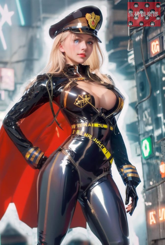 '25/12/08 想像以上にベタベタなトンチキ東欧共産国家風味に そしてせっかくサイバー治安警察なメカが揃ったの だからココはいつものぴっちりスーツ=サンの出番 だろう!てなわけで、Pixiveで制帽や黒い軍服や、 ナ チスプロイテーションポルノ映画めいた格好の絵 を複数混ぜて加筆、原型にしてやってみると… 近来稀に見る成功率、連続4枚モノ になってるぞ! 金髪碧眼巨乳お姉ちゃんが、ナ イロンとビ ニールの ぴっちり軍服でB級サイバーパンク、昔だったら ロジャー・コーマンが制作する映画に出てきそう。 うち1枚などプロンプトでの指示も無いのに片目の 上に金髪の前髪がかかっているとか、"わかってる" じゃないかAIの中の人よ! (以前、突然変異的に発生したキャラであるサイ バー 姫様と護衛ちゃんのように、同じ世界観でのキャラ として使えそうザマス。) |