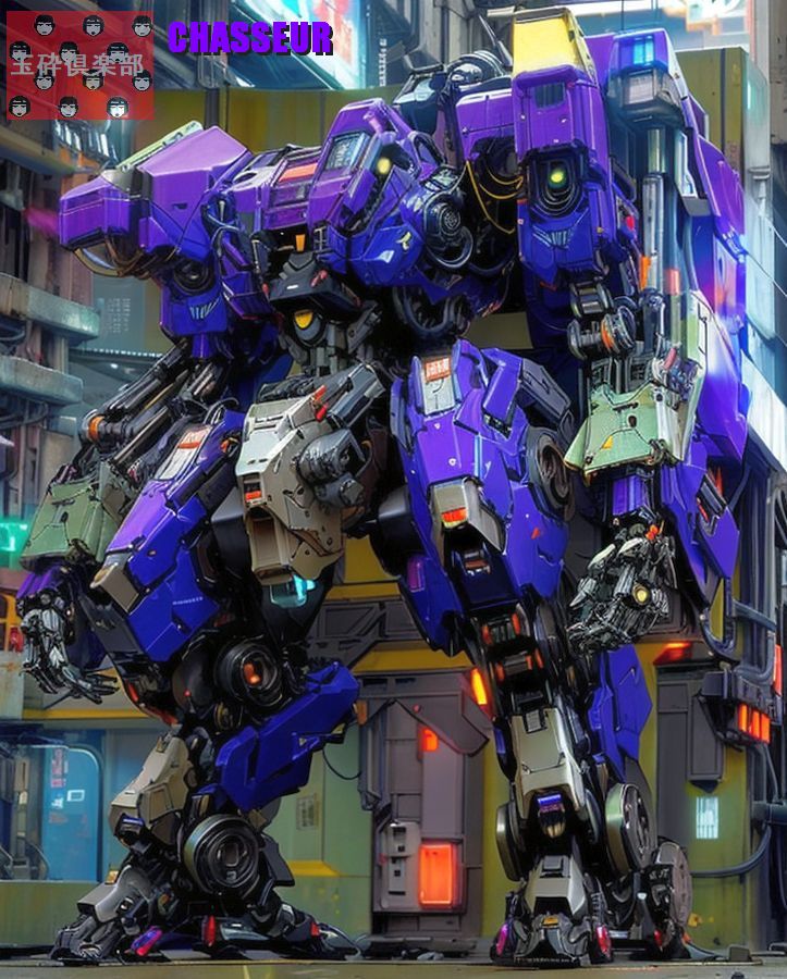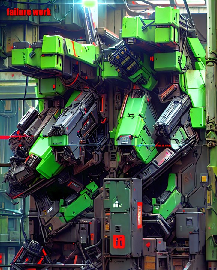'25/12/09 同じサイバー ぴっちり世界感での新たな試 みがコレ なんだかAI生成でメカをでっ ちあげるのが楽しくな ってきたので今度は人型メカ、 所謂リアルロボット の類をやってみるザマス。やは り他所様のメカを 素材に、まずモデルは mechamixを使ってみる と、 例によって三次曲面で構成され た外装が、平面的で 量産向き、現実的な感じに変 化。更に色を入れ替え 赤・青・緑の三体を生成。変化 を大きくしようと すると破綻して、壁 に部品がめり込んだ謎オブジェ と化したりしたんだけ ど、各色それらしく独自形状 に出来上がったので、これを yayoi_mixで再生成し よりリアルなタッチに。前回は 治安警察メカだった けど、今回はバウンティハン ターの個人用メカって ことにして、それぞれ狩人の意 味である マ タギ(赤)、シャ スール(青)、カ サドール(緑) の仮名を付けたザマス(安 直)。 (し かし失敗作でも、積み重ねたコ ンテナめいた部品 は後で何かに使えそうなのでス トックしておく。) |