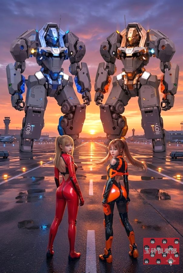 '25/12/21 またまた違う世界観、違うドラマの1シーンなのか そして今度はまた軍用人型メカ、しかし今までのは 内骨格フレームに外装を装着した構造=ガンダムで いえばムーバブルフレームに対し、今 度生成された のは剛性の高い外骨格式=モノコック構造。箱構造 の手脚と胴をマッスルシリンダー(化学薬品の反応 で伸縮する人工筋肉)で繋いだもの…な感じになった から!つまり設定を考えてデザインするのではなく て、出来上がった物を見て設定を考えるって事。で 今回は軍用の飛行場に配備されているメカと、その パイロットであるぴっちりスーツ美少女(ずっと前 に生成されたものの流用)をNanobananaに参考画像 としてアップし、合成させたんだけどな かなか綺麗 にまとまってるじゃないか、でも…アップするメカ の画像を間違え細部の違うメカを2機配置する筈が、 色 違いの同型機が2機になってしまいちょっと失敗 でも大した差はないからドンマイドンマイ! (更にパイロットのスーツと、メカの色を揃えた方が よかったザマス。それでも構図等は悪くなかった。) |