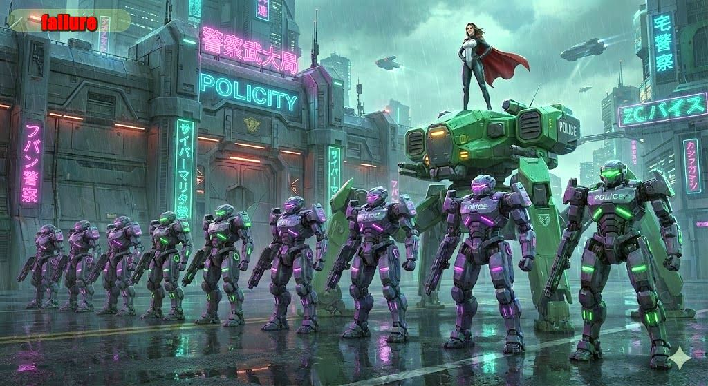 '25/12/24 失敗作でのアメコミヴィラン風痴女めいた女警部w これら数種のサイバー機動隊を横一列に並べ、その 後ろに多 脚装甲車とぴっ ちりスーツ女警部を配置し 治安警察本部前に押し寄せたデモ隊だか暴徒だかに 対峙するシーン、をNanobananaの中の人に日本語 のプロンプトとアップした参考画像を元に生成する ように依頼。しかし最 初に生成されたものは、また 勝手に無難というかありがちデザインに変え られた ザッケンナコラー!こっちで作った参考画像まんま 使えやコラーッ!どうもNanobananaは行儀が良い というか、ぶっ飛んだデザイン、ひどすぎる失敗や 危険な冒険は避ける傾向にあるようで。なので二度 目には"参考画像に忠実である事"を明記してやって みたら、今 度はバッチグー(死語)!プロンプトでの 指定も無いのにちゃんと機動隊員が銃を持っている 点など高く評価したい…一方でやはり指示も無いと いうのに、酸性雨を降らしスピナーを空に飛ばす のはブレードランナーの影響がモロすぎだろ! (逆にStableDiffusion web UIはとんでもねえ失敗作 も連発する代わりに、尖った物を見せてくれる。) |