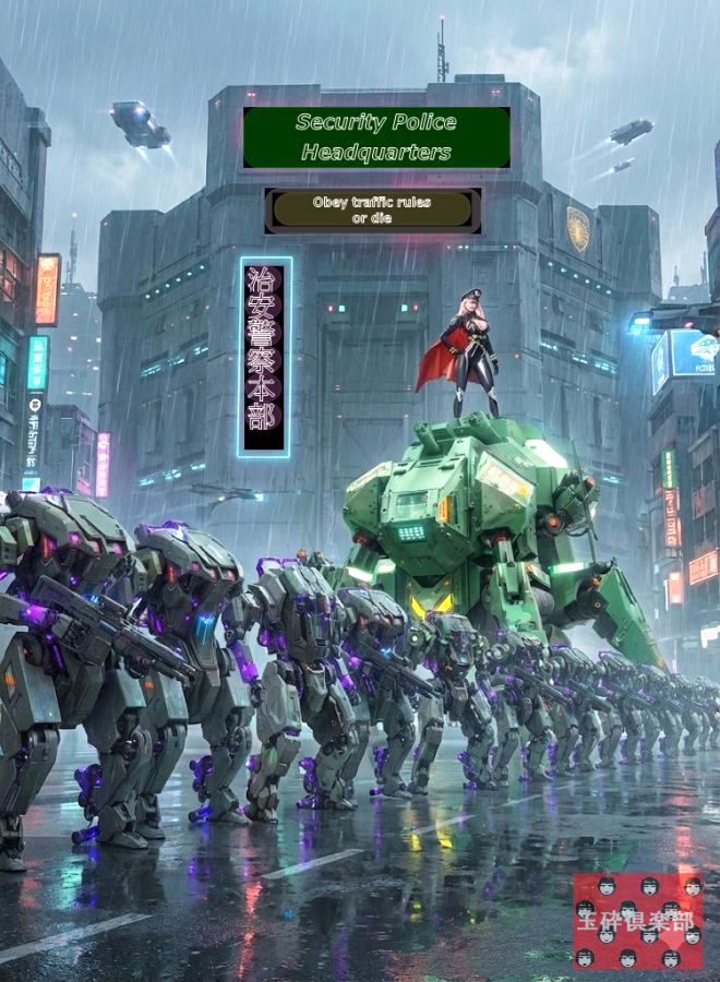 '25/12/23 繰り返し断言する、AIは最高のアイディア出し道具 Stable Dffusion生成のキャラ/メカ、Nanobanana でそれらに背景を付けて再レイアウトする作業が 上手くいくようになったので、プラモの箱絵風以外 にも、昔の漫画雑誌とか児童誌にあった、イラスト によるグラビアページめいた物を生成させる試み。 まずは緑の多脚メカを使うサイバー都市の治安警察 (この街に駐屯していた国家憲兵隊が戦後に独立し、 押し売りめいて都市の治安維持と防衛を司ると当局 に宣言、そのまま居座って市警に成り代わった)の、 主力実働部隊であるサ イバー機動隊を、AI改変して デザイン。例によって元にした画像が何だか全く解 らないレベルに変化、しかも何種類にも。中でも、 単 純な四角い箱めいた頭の奴と、体 の前面が大きな 顔めいた奴とか、自分の頭では普通思いつかない物 なので、実に面白い。また今回使ってないけど、 座席に手脚が付いたようなエグゾスケルトン風の奴 は一番ユニーク、座席の上に腕を取り外した上半身 だけのサイボーグを載せたように見え、この発想は 無かった!今回の"創造の斜め上"という奴ザマス。 (AIによるアイディアの玉石混交の中から、生成させ た人間が"玉"を見抜いて取り上げる事が重要。反AI どもにはそのスキルが無い、創作の才能も無い。) |
